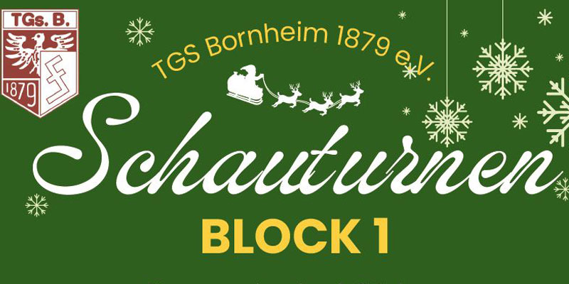 Wir freuen uns, euch in diesem Jahr wieder unser Schauturnen bieten zu können! Hier präsentieren sich auf der großen Bühne im Saalbau Bornheim viele unserer Vereinsgruppen mit tollen Vorführungen.