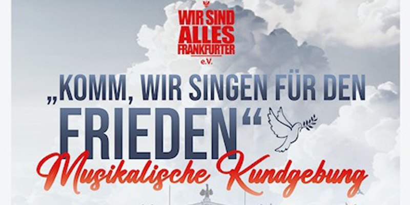 Unter dem Motto „Komm, wir singen für den Frieden“ lädt der Verein WIR SIND ALLES FRANKFURTER e.V. zu einer besonderen musikalischen Kundgebung ein.