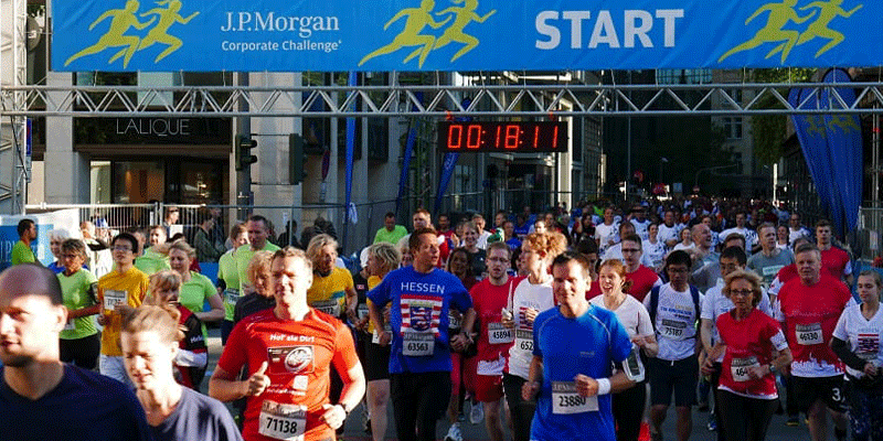 Bei der J.P. Morgan Corporate Challenge kommen Unternehmen aus zahlreichen Standorten in ganz Deutschland zusammen, um sich außerhalb der Arbeitszeit zu treffen, Kontakte zu knüpfen und für eine gesunde Arbeitskultur. Und nach dem Lauf: gemeinsam feiern! Die Stadt Frankfurt ermöglicht es, mehrere Parks und Grünflächen als Firmentreffpunkte (PartyPoints) zu nutzen (Vergabe über die Organisation des Laufs).